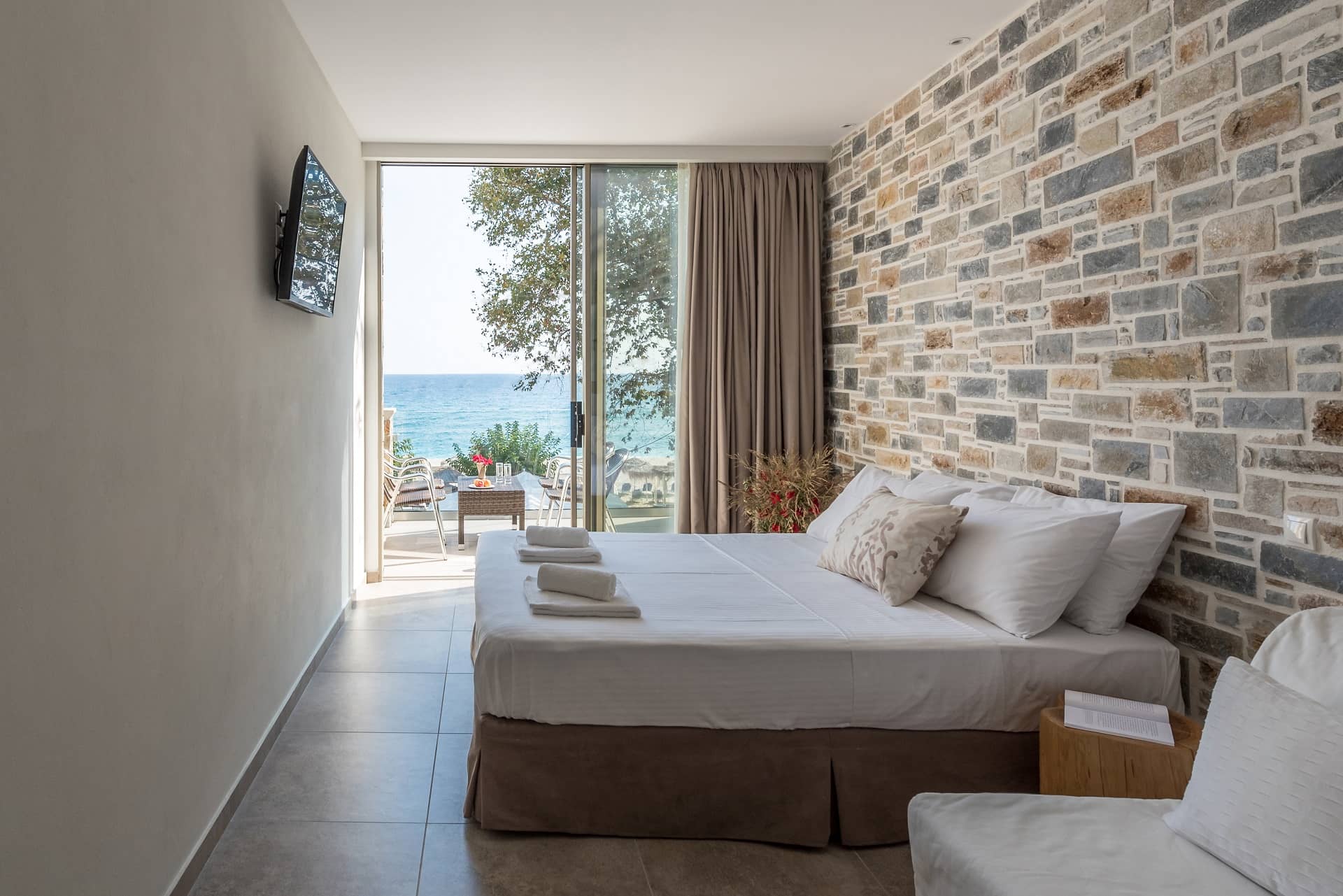 Όλα αυτά συνδυάζονται ιδανικά με την υπέροχη θέα της παραλίας Αγίων Σαράντα, που απλώνεται μπροστά σας!